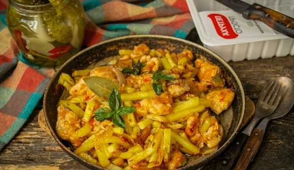 Probeer eens een stevige Tataarse azu met kip te maken. Deze optie maakt het gerecht lichter en malser. U bespaart ook merkbaar tijd bij het koken.