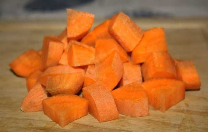 - Snijd de wortel in grote blokjes.
