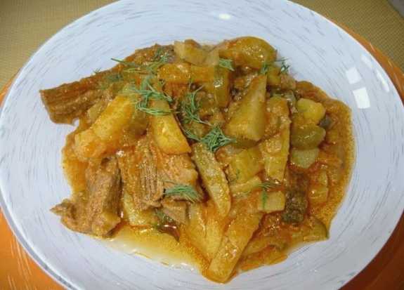 Klassiek Tataars azu-recept met ingelegde komkommers