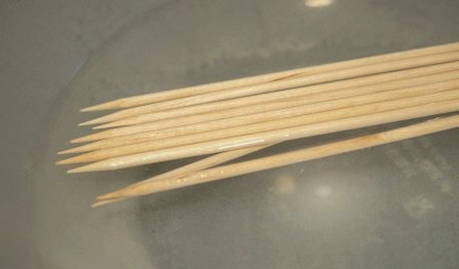 - Leg houten spiesen voor kebab enkele uren in water zodat ze verzadigd zijn met vloeistof en niet verbranden tijdens het frituren op kolen.