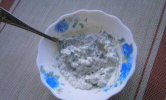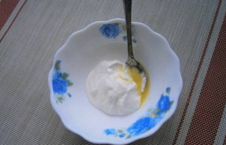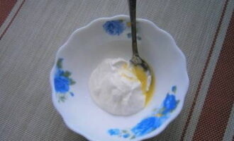 Meng in een aparte kom zure room met een kleine hoeveelheid plantaardige olie.