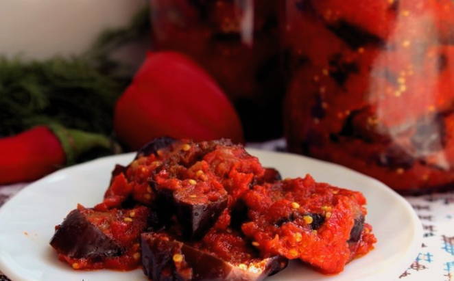 Diversifieer uw winterkelder met een interessante Georgische aubergine- en tomatenbereiding. Een sappige traktatie zal u verrassen met zijn voedzame eigenschappen, heldere smaak en matige scherpte.
