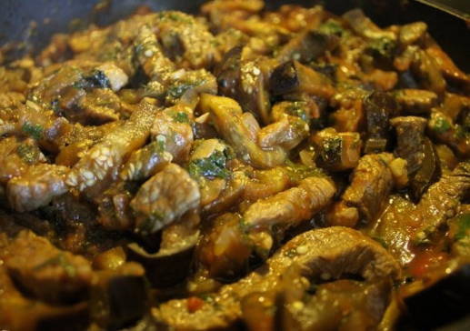 - De afgewerkte vlees- en aubergineschotel is klaar. Verdeel het in porties en serveer!