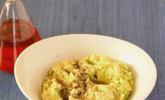 Voeg azijn, zout en gemalen peper toe aan de resulterende notenmassa, meng.