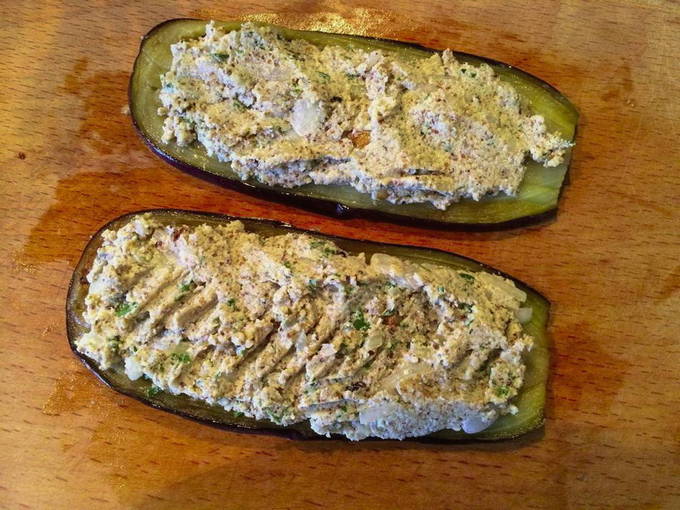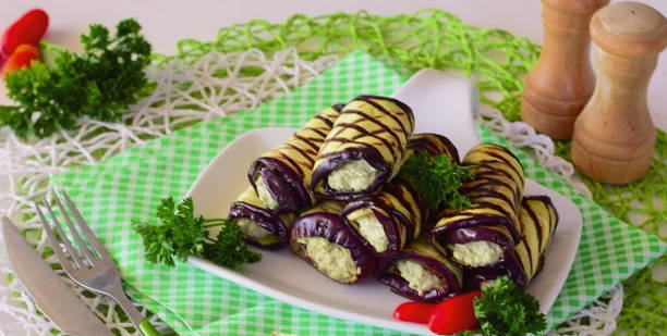 - Auberginerolletjes met notenkaasvulling zijn klaar, gekoeld serveren.