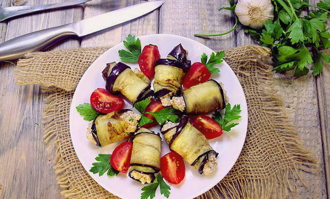 Een mooie, aromatische en pittige snack, uitgevonden in Georgië. Auberginerolletjes met notenvulling zijn heel snel en eenvoudig te bereiden. Zo'n gerecht ziet er op weekdagen en op feestdagen even goed uit.