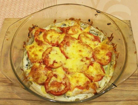 Bak de schotel 30-40 minuten in de voorverwarmde oven op 180 graden.