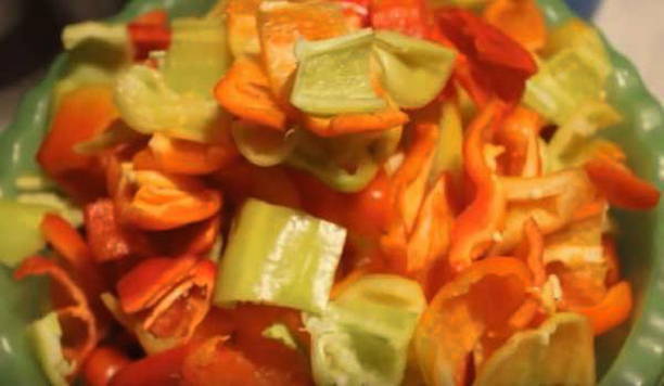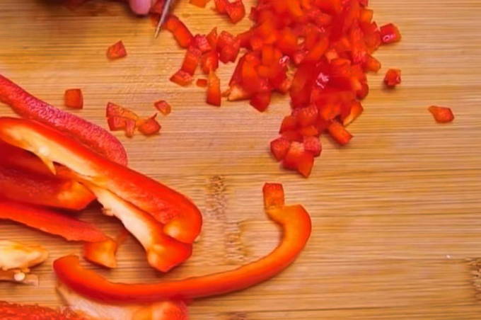 - We snijden kleine paprika's en wortelen. Groenten apart bakken tot ze zacht zijn.