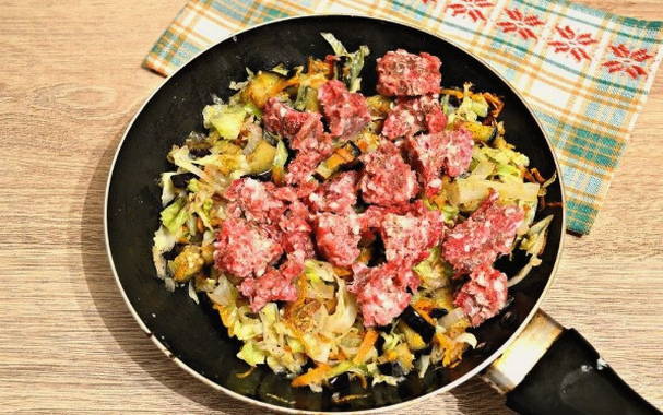 - Stapsgewijs recept voor het koken van aubergine met vlees en kool