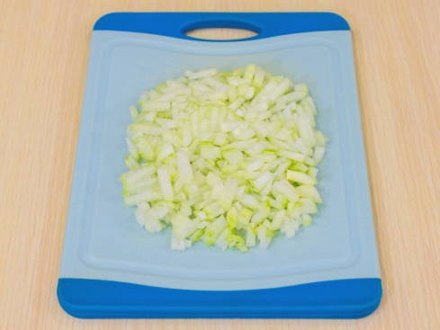 - Pel de uien en snij ze met een mes in kleine stukjes.