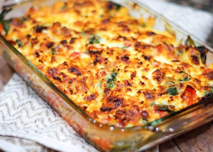 Aubergine gebakken met tomaten, paprika en kaas