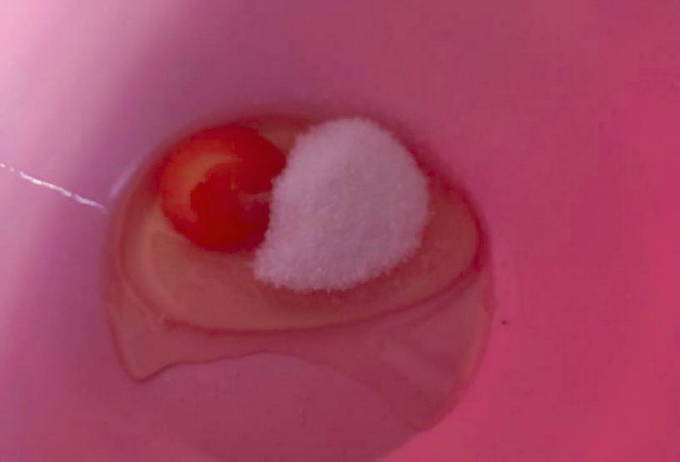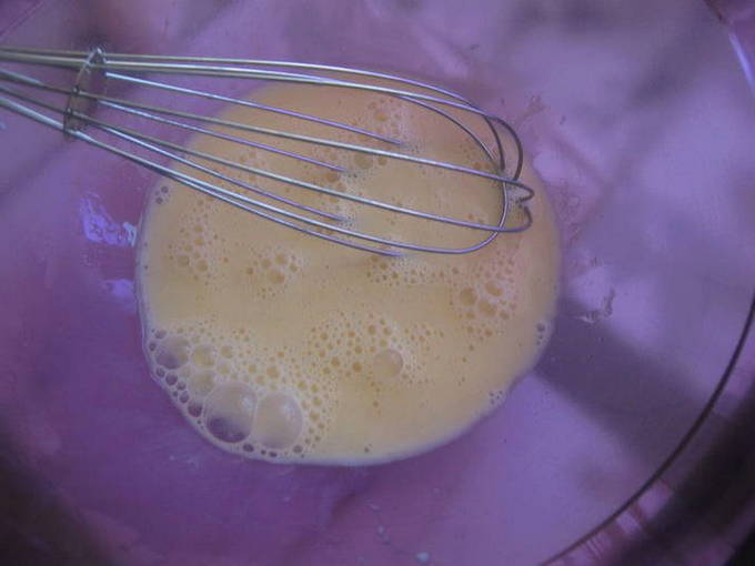 - Klop het ei los met suiker.