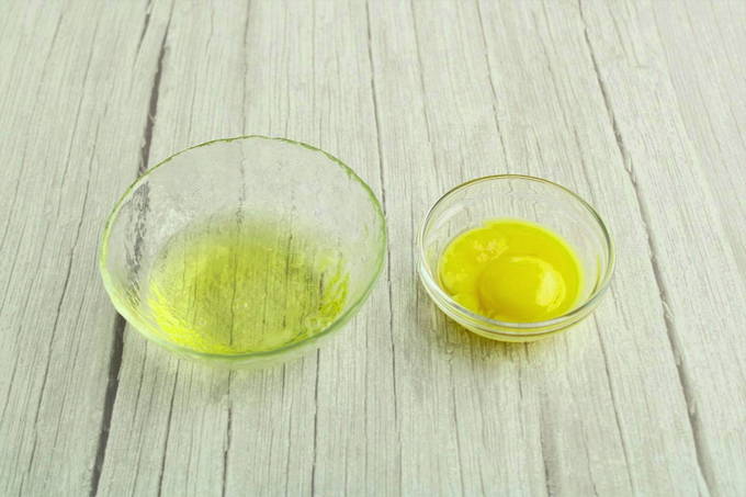 - Spoel de eieren goed af met heet water, droog ze af en scheid het eiwit van de dooiers.