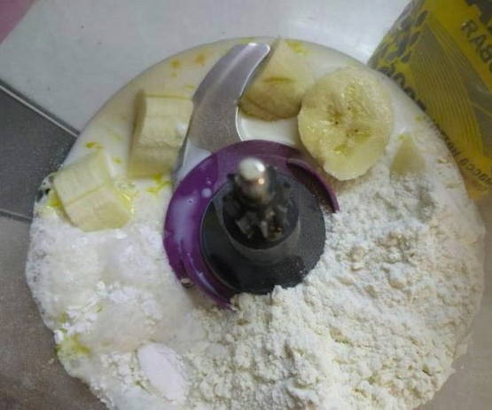 - Combineer havermeel, griesmeel, banaan, water en zout. Omdat griesmeel en havermeel in water zwellen, kunt u af en toe water toevoegen als het deeg erg dik wordt.