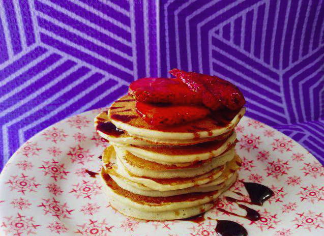 - Serveer pannenkoeken met vers fruit en honing.