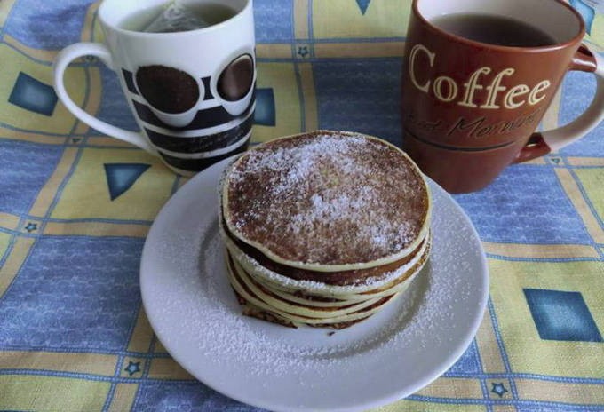 - Warme pannenkoeken kunnen worden bestrooid met poedersuiker en geserveerd.