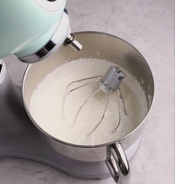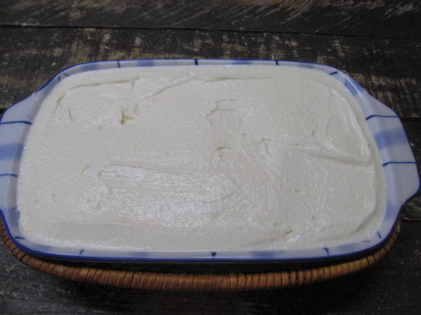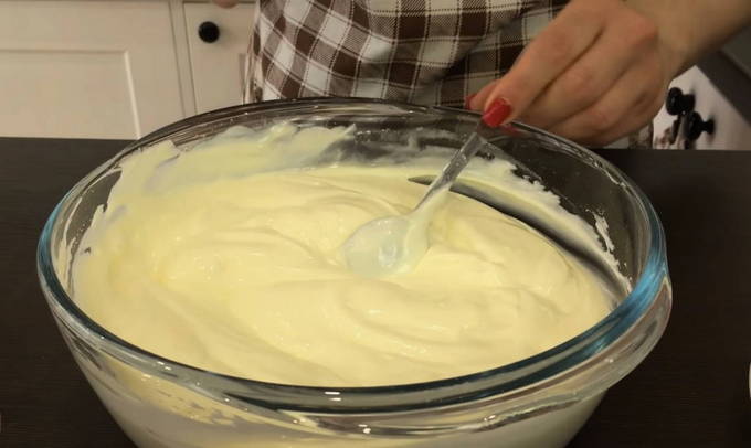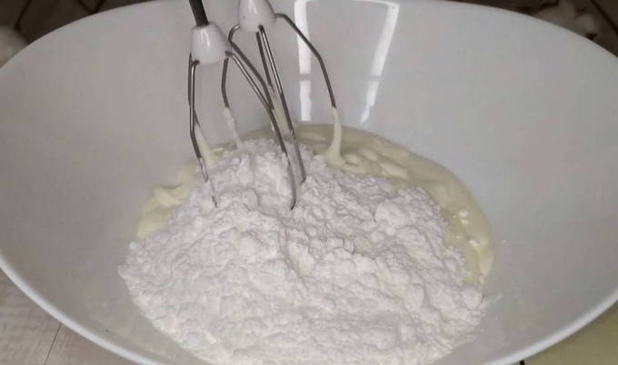 - Doe zure room, poedersuiker en vanilline in een bak. Klop met een mixer tot een gladde massa.