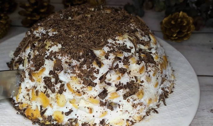 Lichtzure room, zoete banaan en zoute cracker geven de taart een pittig tintje. We hopen dat je niet geïntimideerd bent door de combinatie van de cracker met zulke delicate ingrediënten, en dat je zeker bij het kookproces komt. Een mooi opengewerkt uiterlijk zal oprechte interesse in kinderen wekken.