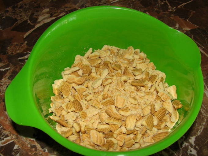 - We breken de koekjes in kleine plakjes, maar brengen ze niet in de staat van kruimels.