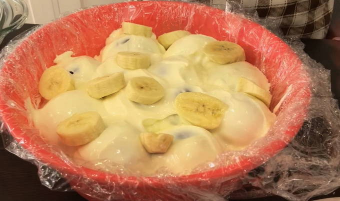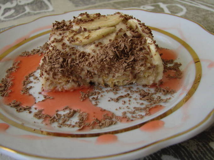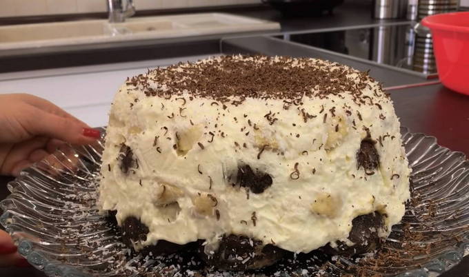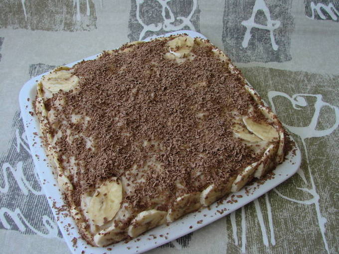 - Hoe maak je een bananencake met gecondenseerde melk, zure room en koekjes zonder te bakken?