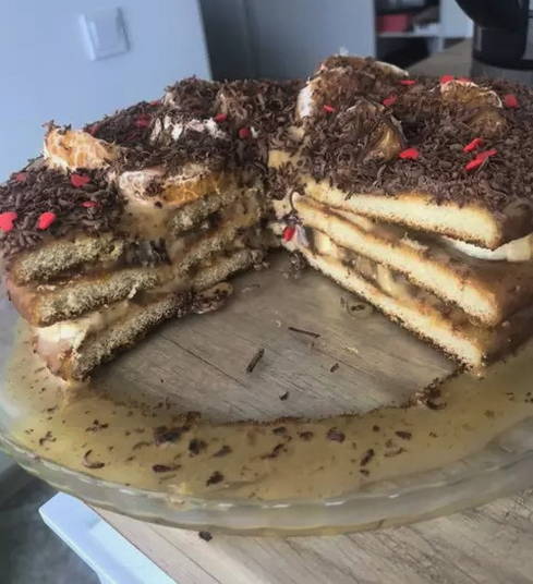 Bananencake met zure room en koekjes zonder thuis te bakken