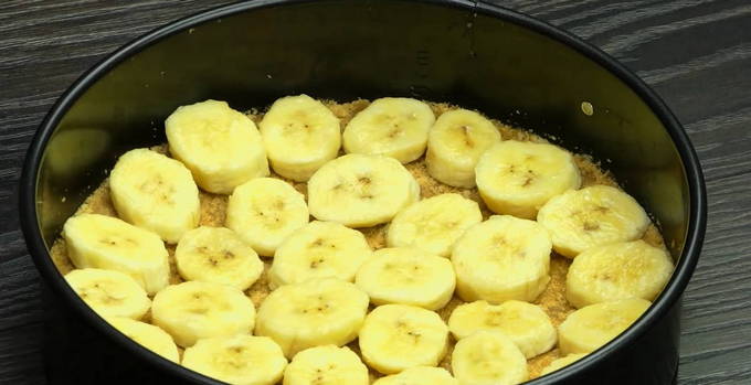 Deze basis, gemaakt van elk zoet gebak, kan worden gebruikt voor moussecakes en cheesecakes met een grote verscheidenheid aan vullingen. En de bananenlaag in combinatie met kwark is niet alleen lekker, maar ook gezond voor zowel kinderen als volwassenen.