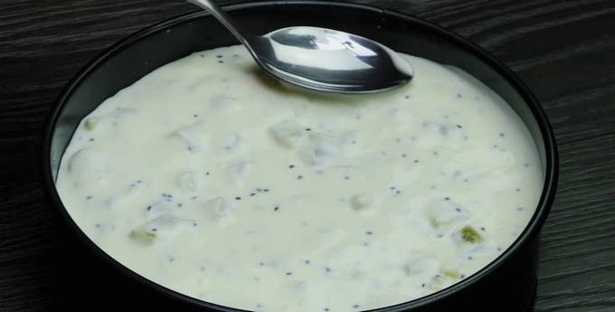 - Koel de kiwi en combineer hem met natuurlijke yoghurt en gelatine opgelost in gekookt water in een aparte container. Meng alle ingrediënten met een spatel.