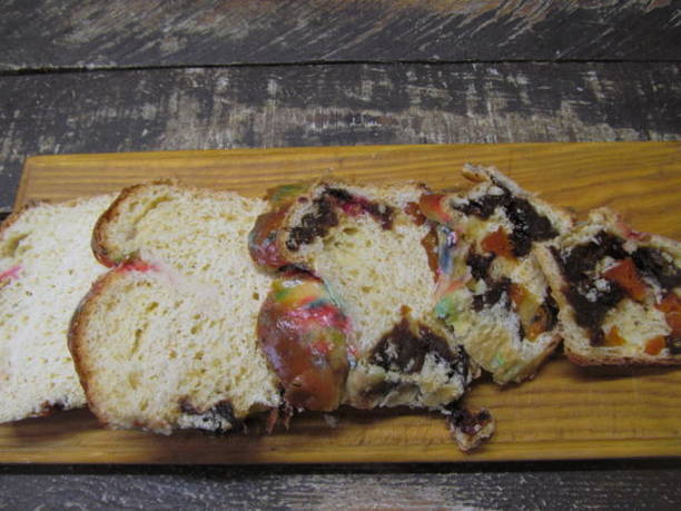 - Om de basis te bereiden, neem je plakjes zoete paascake met vulling.