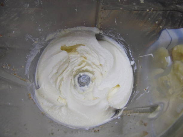 - Meng voor de derde wrongellaag in de blenderkom de wrongel, zure room en kaneel. Slaan tot dat het glad is.