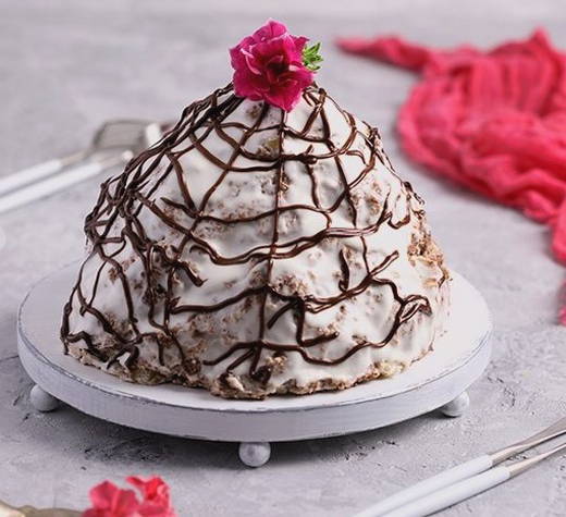 Pancho cake combineert een vochtige biscuit gedrenkt in zure room afgewisseld met walnoten. Laten we, om te contrasteren met de lichte room, een chocoladeglazuur maken.