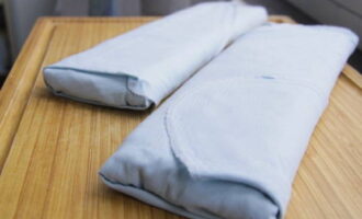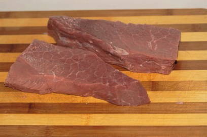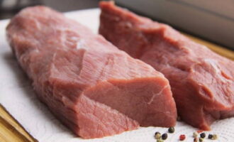 Spoel het vlees af onder water en veeg het af met keukenpapier. Verwijder strepen en vet onmiddellijk in. Een te groot product kan in meerdere stukken worden gesneden.