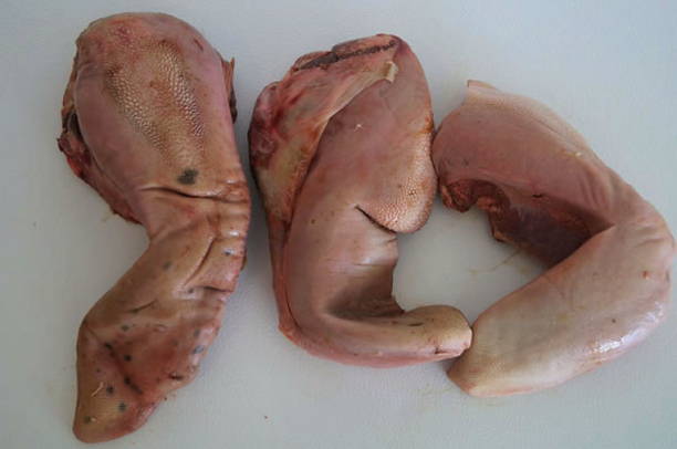 - We wassen de rundertong grondig. We reinigen het van de film en alle overtollige deeltjes op het oppervlak.