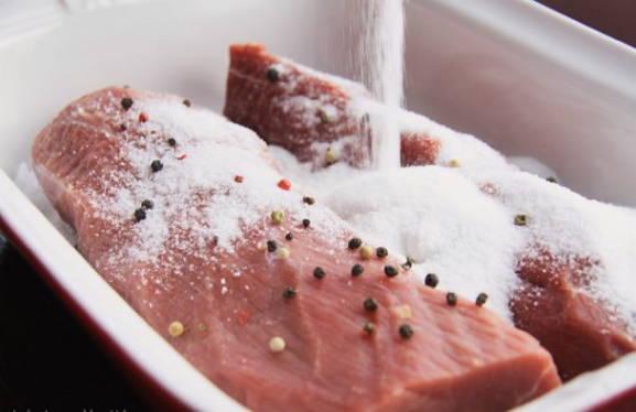 Na een tijdje zal het vlees de benodigde hoeveelheid zout opnemen.