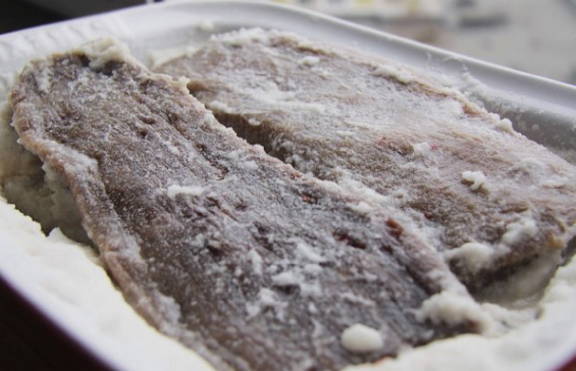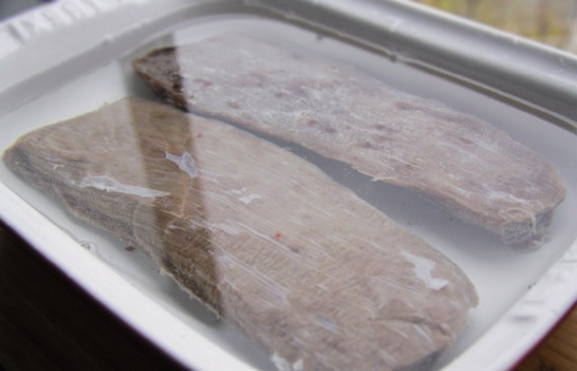 - Na een tijdje moet het vlees worden afgespoeld van zout en enkele uren in koud water worden geweekt.