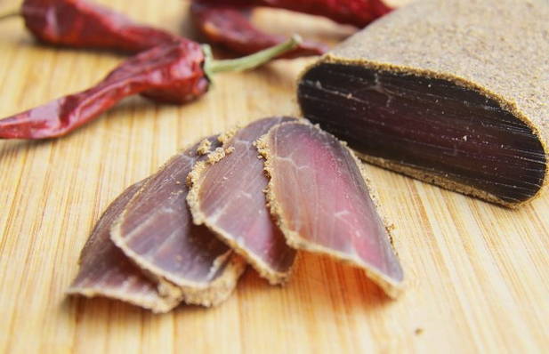 - Pittige basturma volgens Armeens recept is klaar! Snijd je traktatie en serveer!