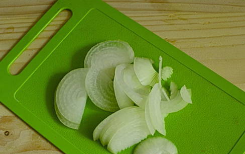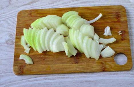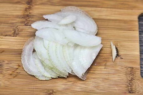 - Snijd de ui in halve ringen.