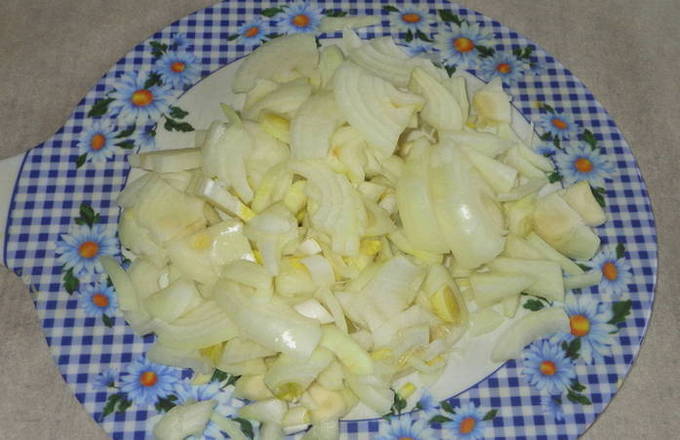 - Pel de ui en snij in kleine blokjes.