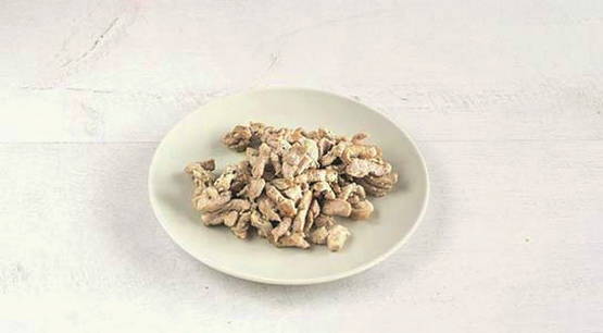 - Was het varkensvlees, dep het uit de vloeistof, snijd het in kleine repen.