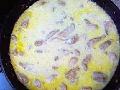 - Los de bloem op in een beetje room. Giet vervolgens dit mengsel en de resterende room in de pan. Sudder de stroganoff op laag vuur, afgedekt gedurende 20 minuten.