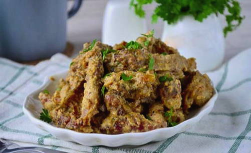 Sappige en heerlijke varkensstroganoff met melk