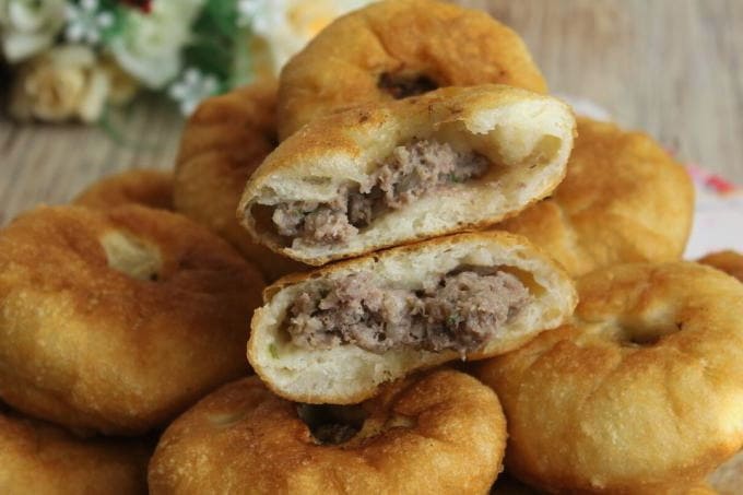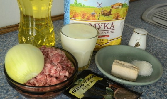 Op een mals melkgistdeeg worden luchtige en smakelijke blanken verkregen. De gehaktvulling maakt het gerecht sappig en voedzaam. Heet opdienen.