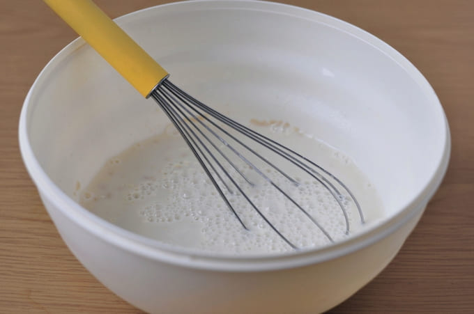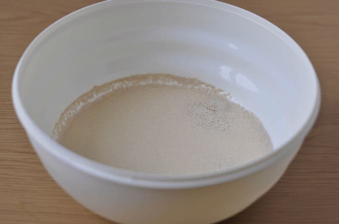 - Laat het deeg 10 minuten staan om de gist te activeren.