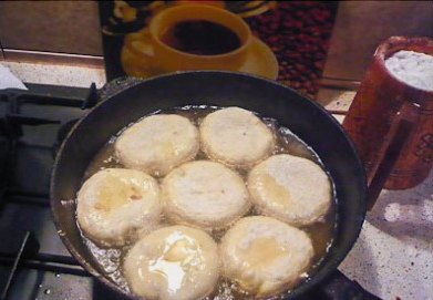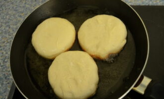 - We verwarmen de pan, gieten er plantaardige olie in en bakken het product aan beide kanten goudbruin.