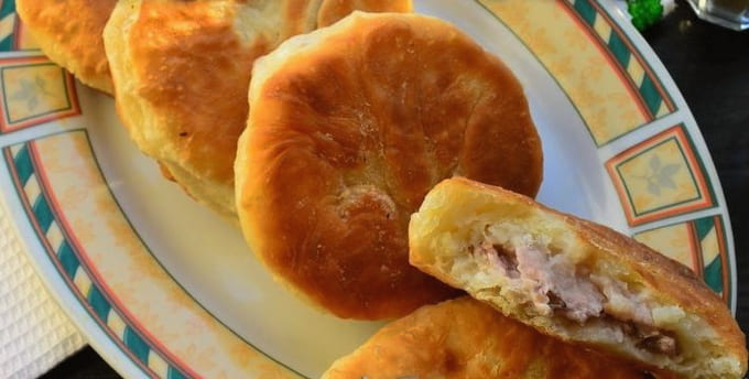 Op een eenvoudig gistdeeg wordt sappig en luchtig wit met een vulling verkregen. Het warme gerecht dient als voedzaam huisgemaakt ontbijt of als aanvulling op uw maaltijd. Serveer met kruiden en zure room.