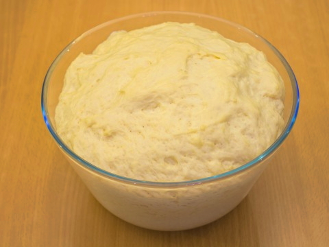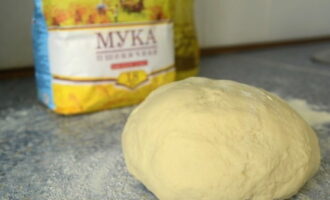 Kneed het deeg voorzichtig tot een dichte en elastische klont ontstaat. Bedek het product met een handdoek en laat het een uur op een warme plaats staan.