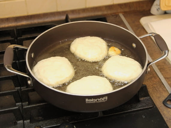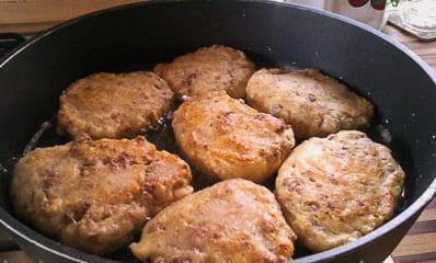 - Verwarm een koekenpan voor met plantaardige olie. We verspreiden de blanken hier en bakken ze goudbruin. Kook op middelhoog vuur zodat de vulling goed gebakken is.
