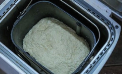- We zetten de broodbakmachine aan in de modus "gistdeeg" en wachten tot deze omhoog komt. Bij handmatig koken moet het product alleen worden gemengd en een uur op een warme plaats worden bewaard.