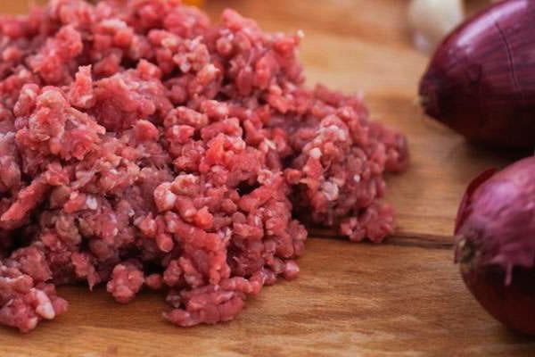 Terwijl het deeg omhoog komt, bereid je de vulling. Snipper de ui en meng deze met gehakt, gemalen peper en zout naar smaak.