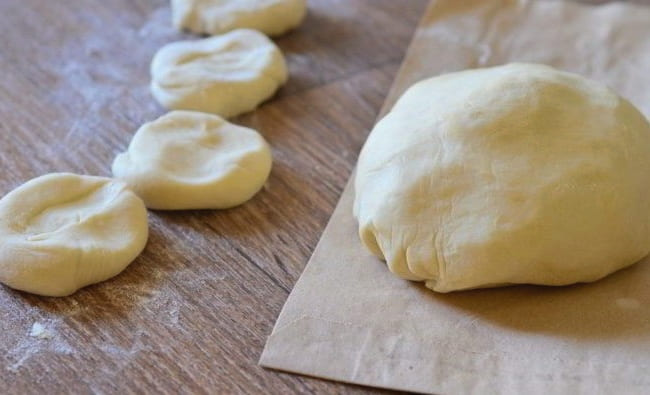 - Kneed het afgewerkte deeg met je handen en verdeel het in kleine stukjes, die elk in een kleine dikke cirkel worden gerold.
