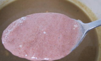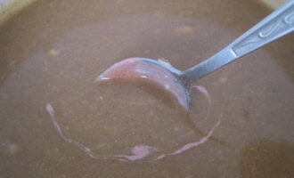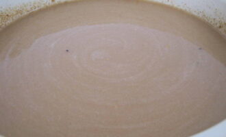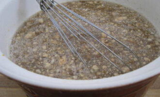 Breek met een garde de klontjes bloem en breng het mengsel tot een homogene massa.